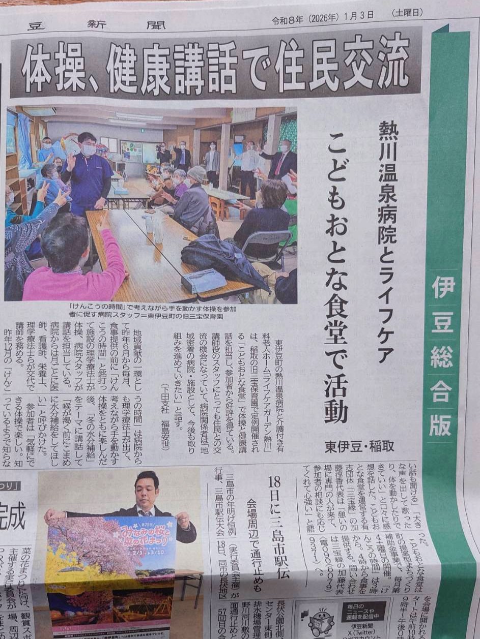 今月3日の伊豆新聞にて、熱川温泉病院と当施設が行っている『こどもおとな食堂』の取組みが紹介されました。